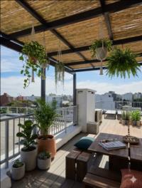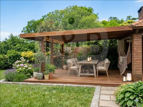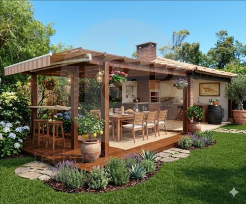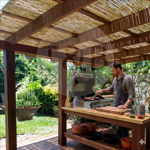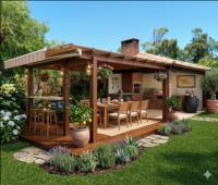 Pérgola en Madera con Techo en Policarbonato Ondulado.