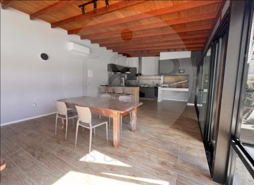Isla central con barra y terminaciones contemporáneas que aportan calidez.