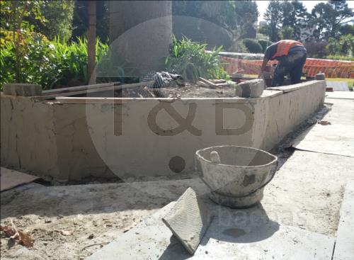 Construcción de Jardineras, Regueras con terminación piedra para pluviales.