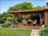 Pérgola en Madera con Techo en Policarbonato Ondulado.