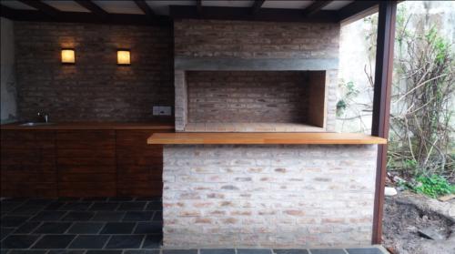 Espacio de barbacoa abierta, integrada a espacios comunes de la vivienda.
